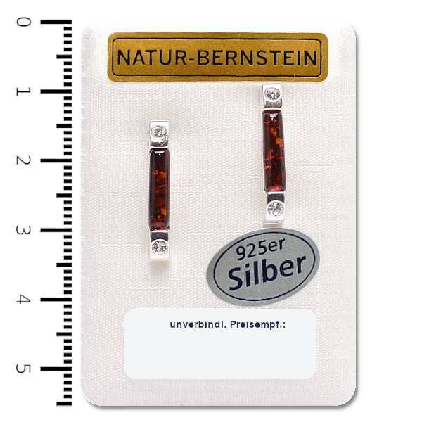 Bernstein Ohrstecker, cognac, in 925er Silber Fassung, auf Dekokarte