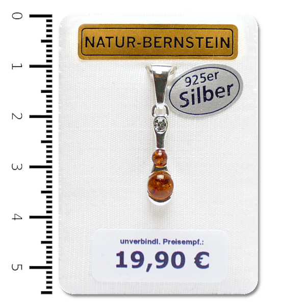 Bernstein Anhänger, cognac, in 925er Silber Fassung, auf Dekokarte