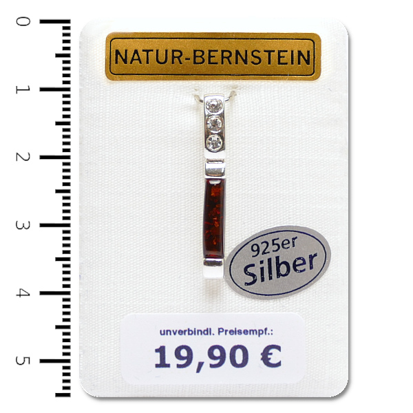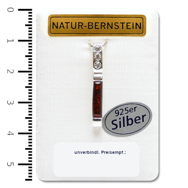 Bernstein Anhänger, cognac, in 925er Silber Fassung, auf Dekokarte