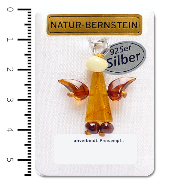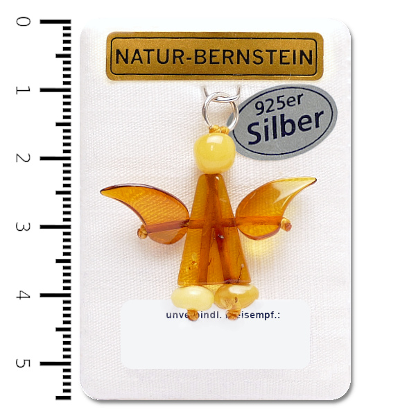 Bernstein-Anhänger "Schutzengel", ungefasst an 925er-Silber Alluminium Öse auf Dekokarte