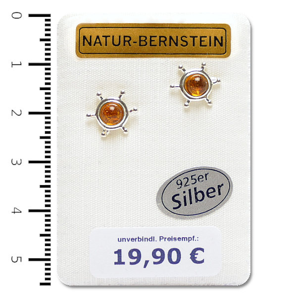 Ohrstecker "Steuerrad" in 925er Silber Fassung, cognac, auf Dekokarte