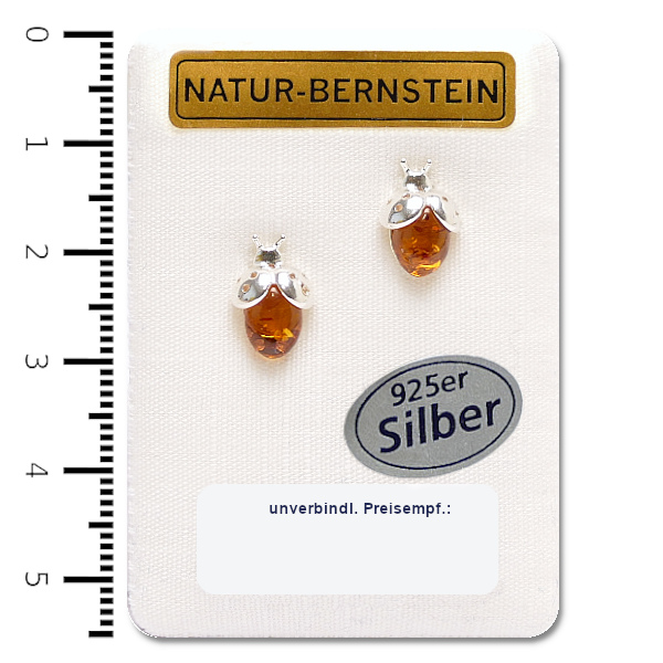 Natur-Bernstein, Ohrstecker 925er-Silber, Marienkäfer, auf Dekokarte