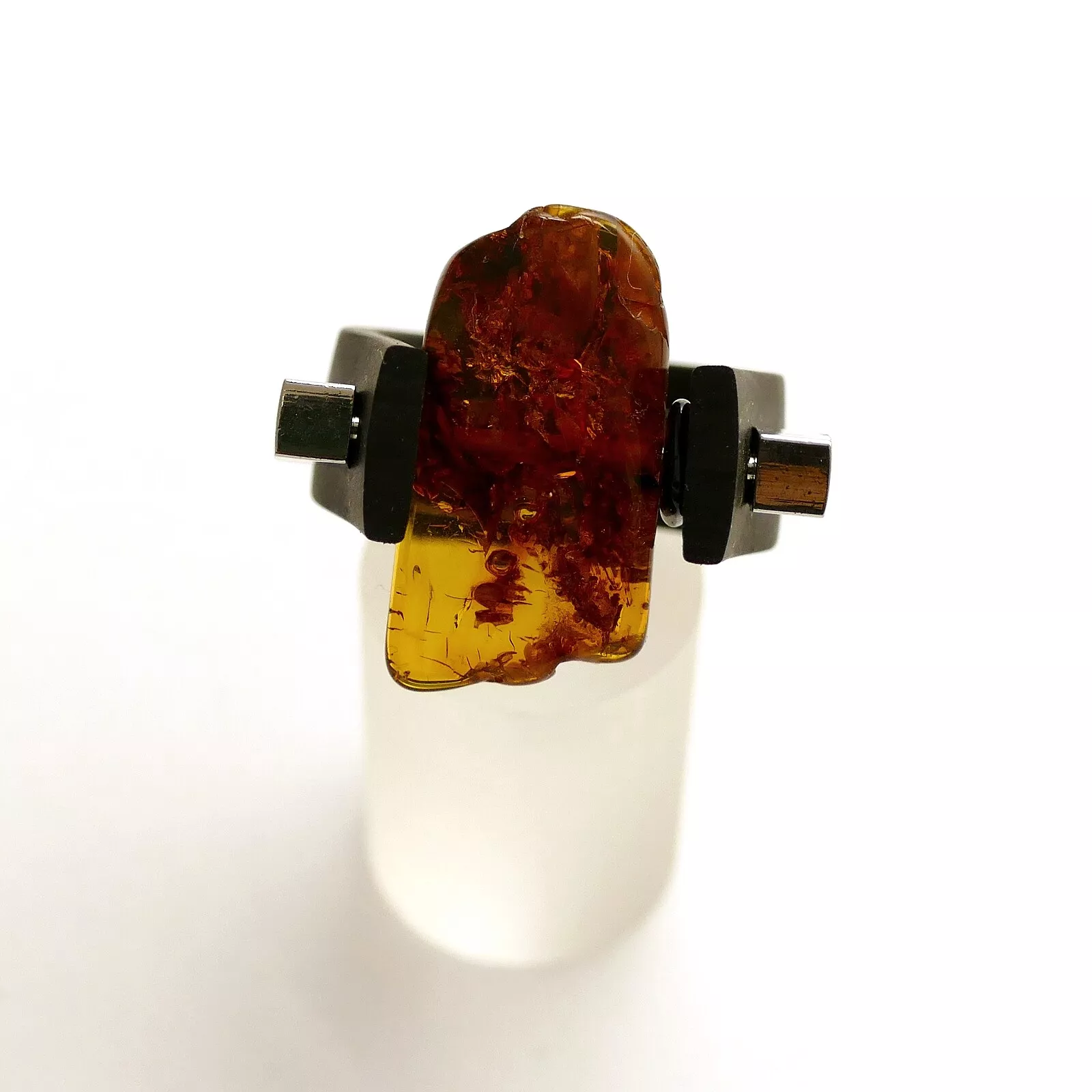 Edle Ringe mit Natur-Bernstein und Kautschuk