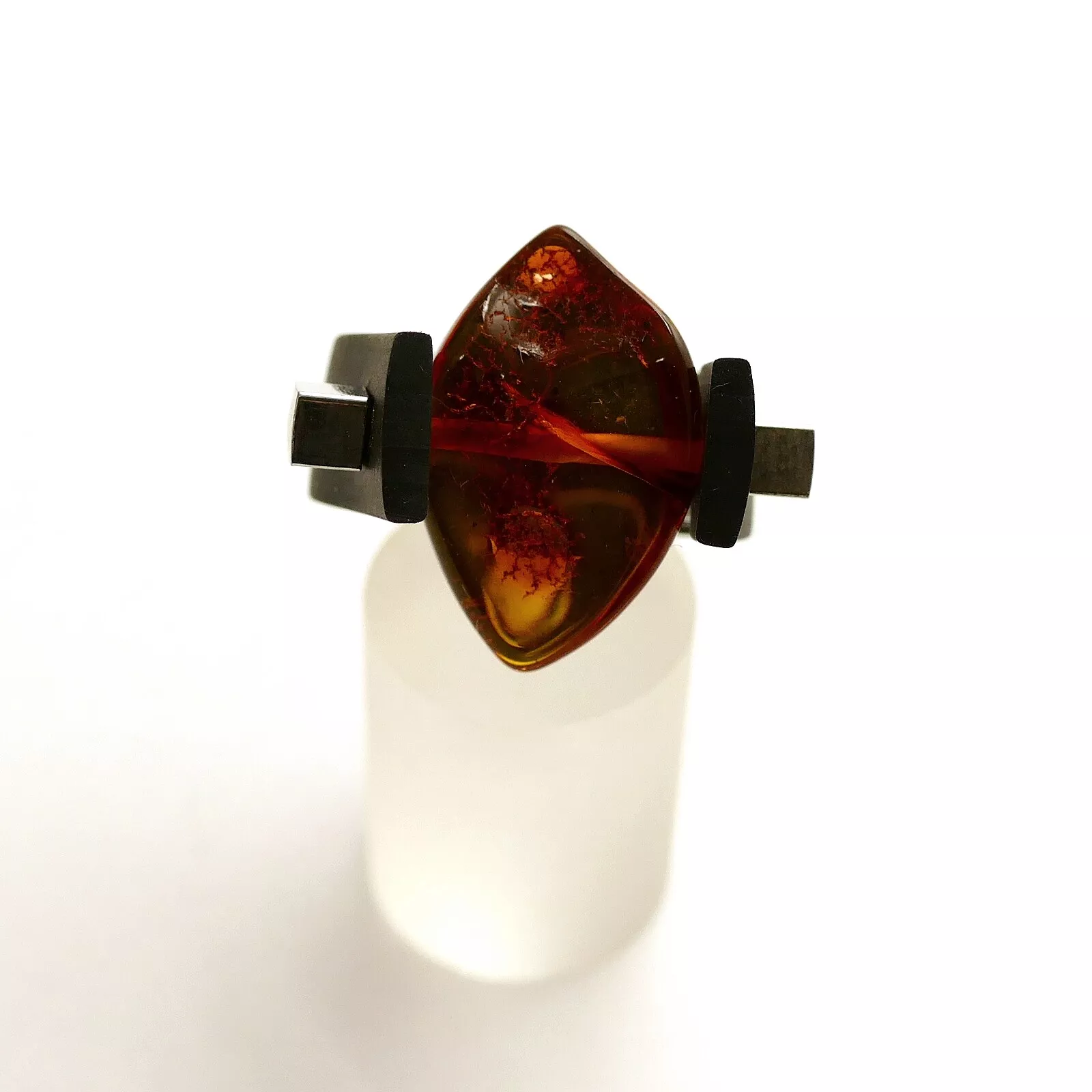 Edle Ringe mit Natur-Bernstein und Kautschuk